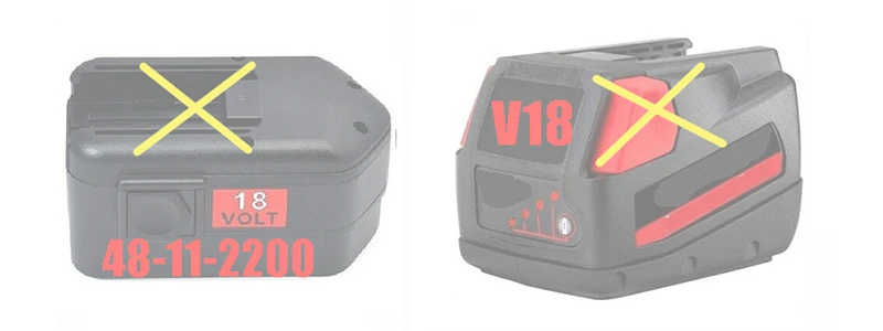 Not suitable for “ALL 18V ” series lithium batteries(marked ” X ” ), as shown in the figure below: