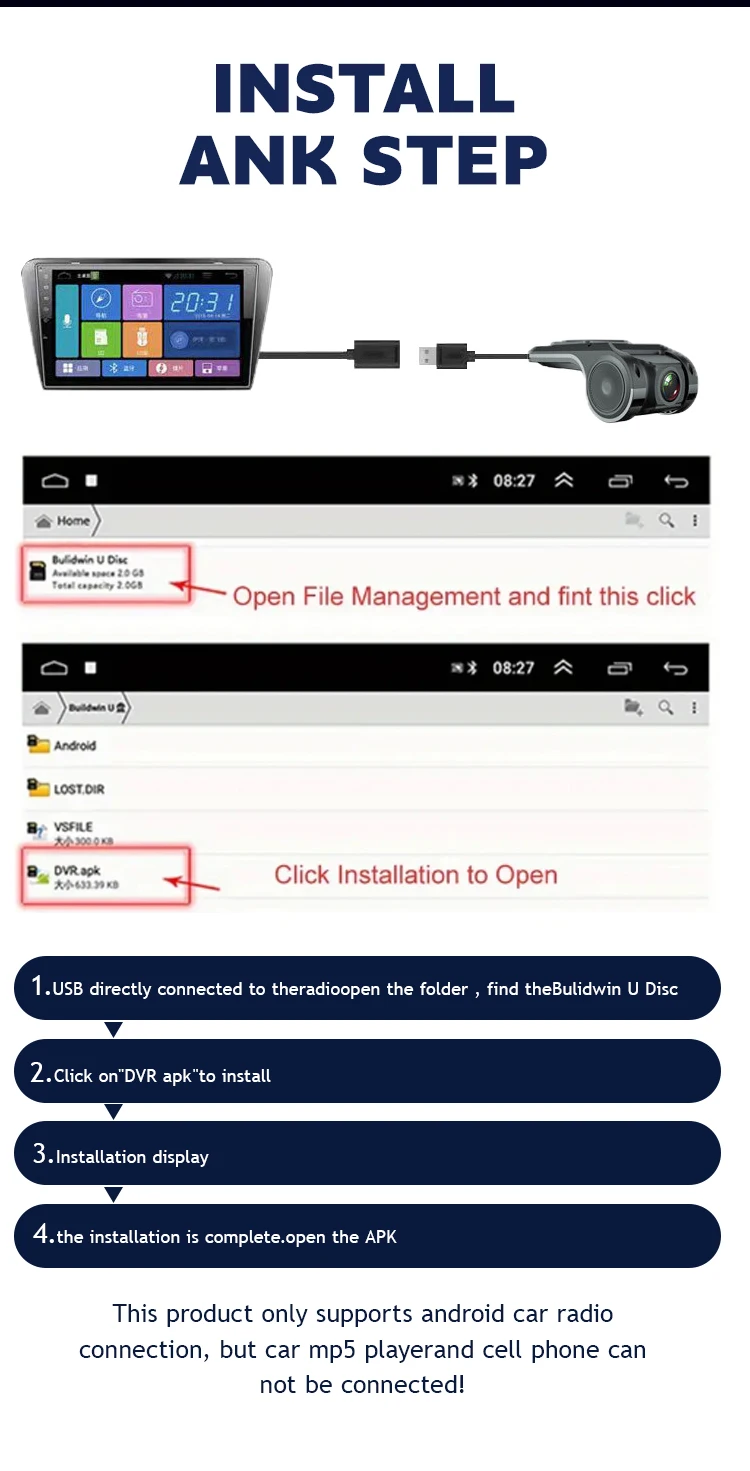 3.Installation position: front windshield, 3M adhesive