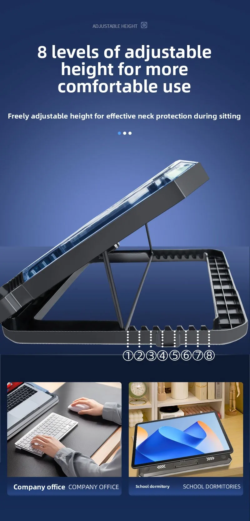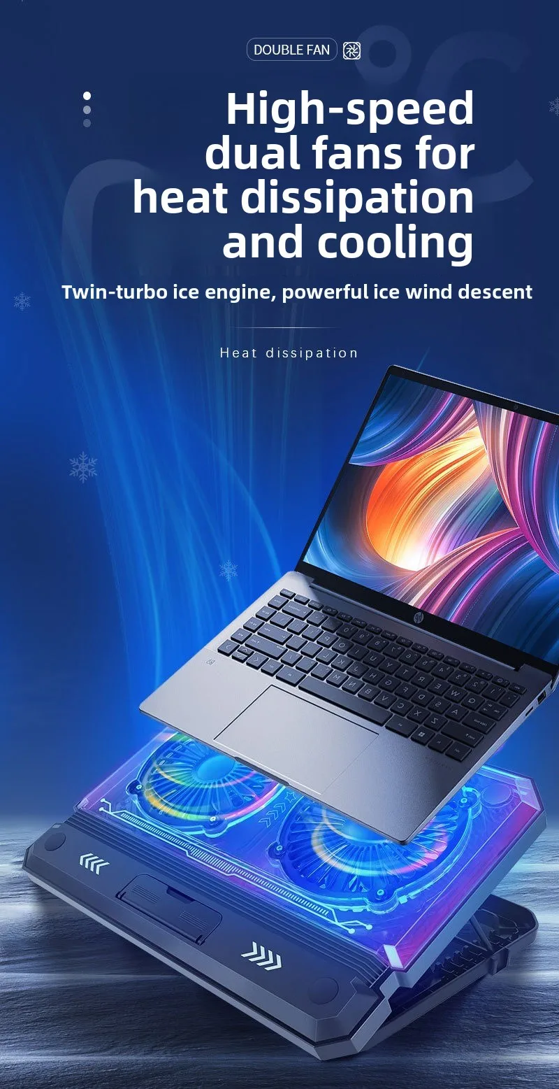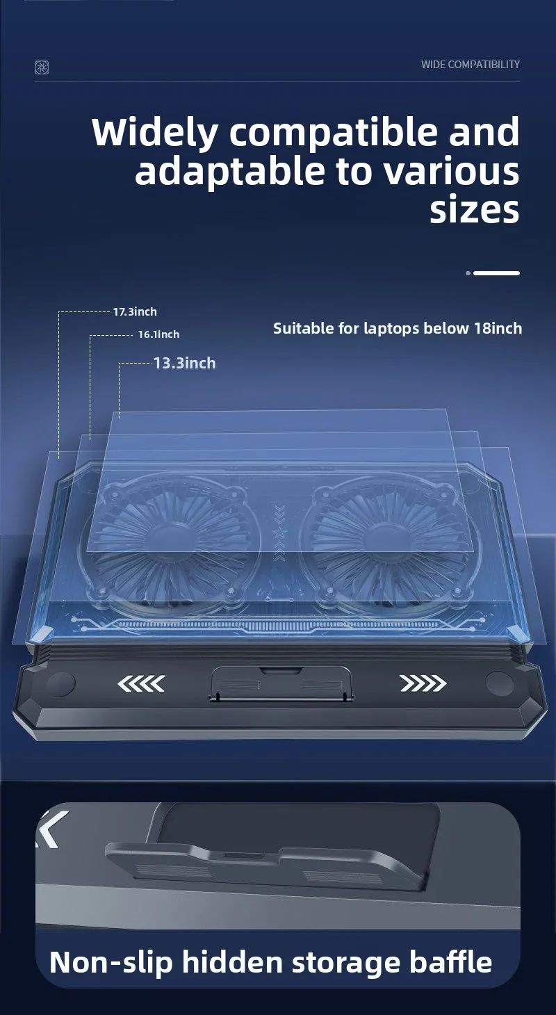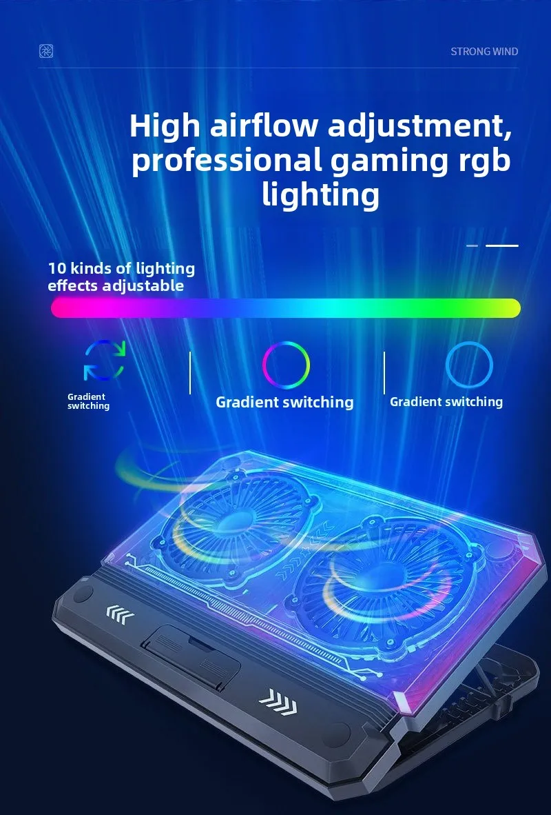 Gaming laptop air-cooled cooling pad bracket with dual fans supporting 17 inch laptop universal portable lifting bracket