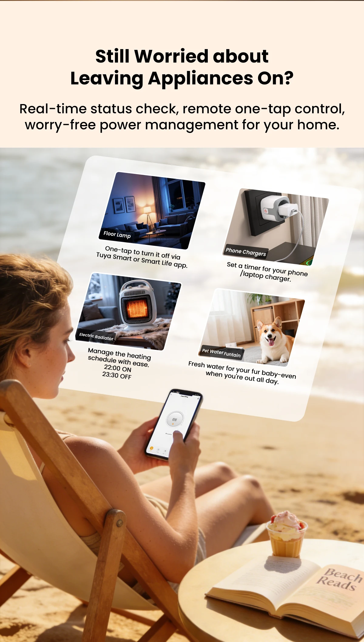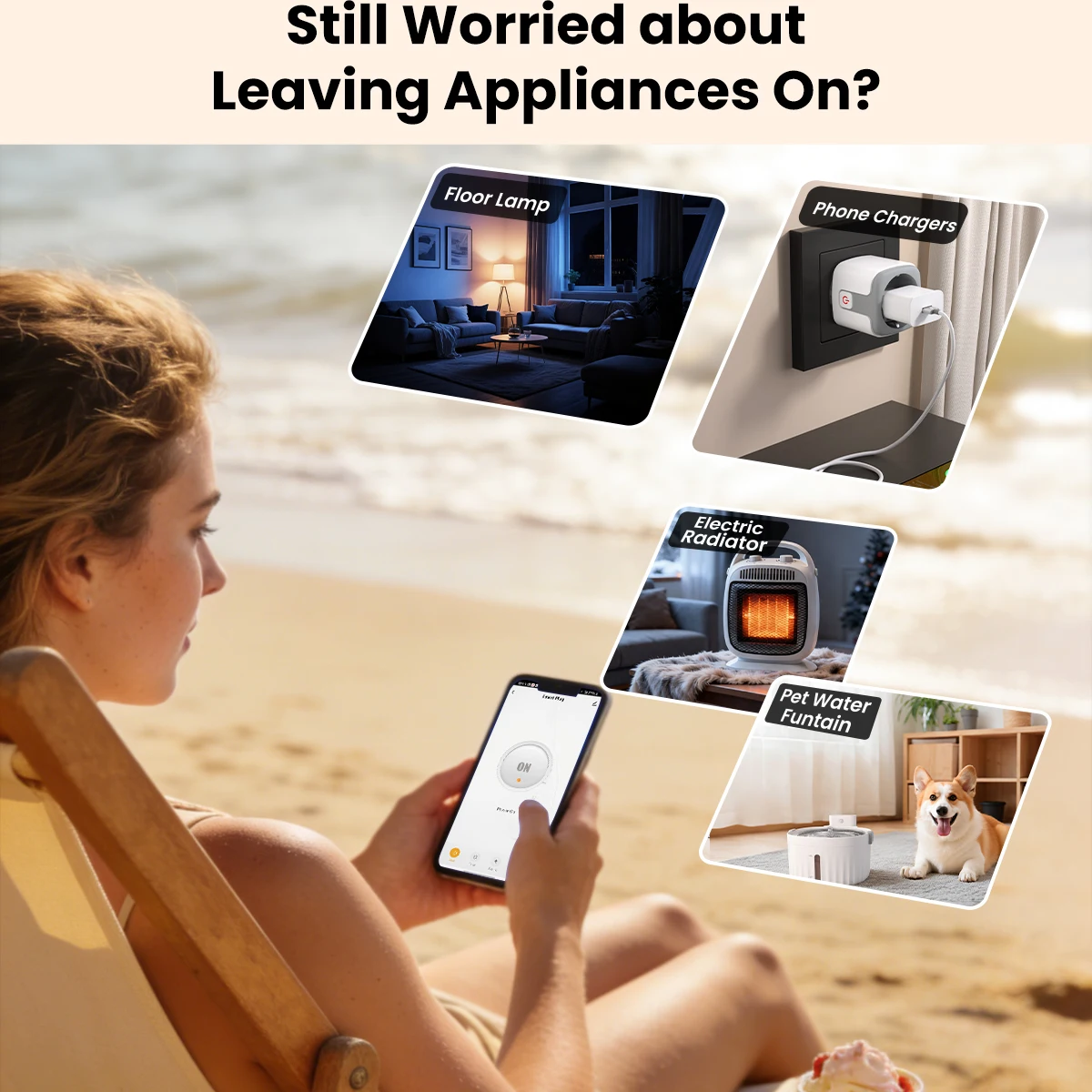 Check real-time device status and control with one tap via tuya smart/smart life app-turn off floor lamps remotely, keep pet water fountains running, schedule electric radiators, and set charger auto-off timers. works with Alexa and Google Home for voice control, eliminating worries about left-on appliances.