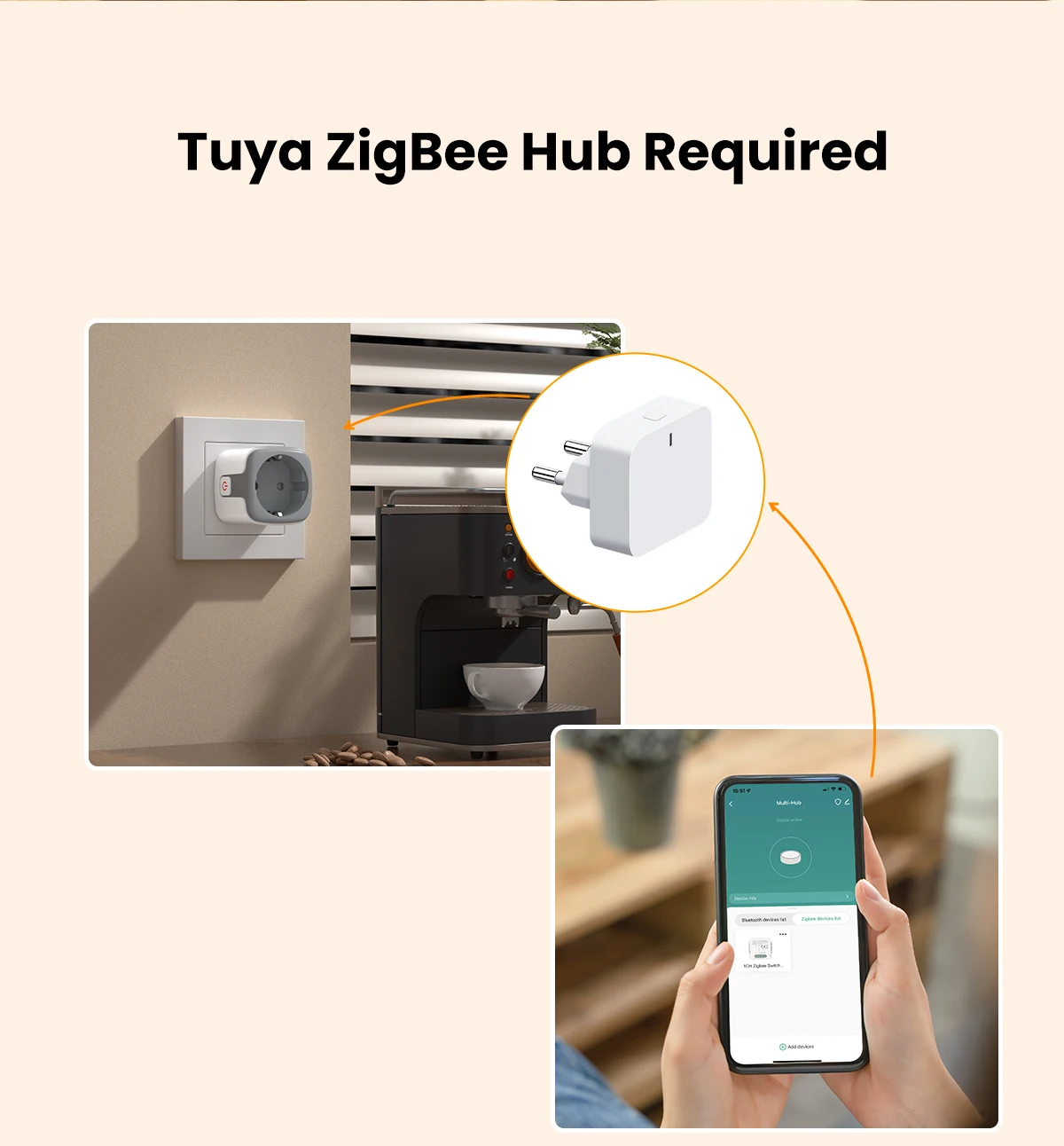 When pairing this zigbee plug with Tuya Smart or Smart Life app, the extra Tuya ZigBee hub is required. Without the hub, you can only turn it on/off by hand.
