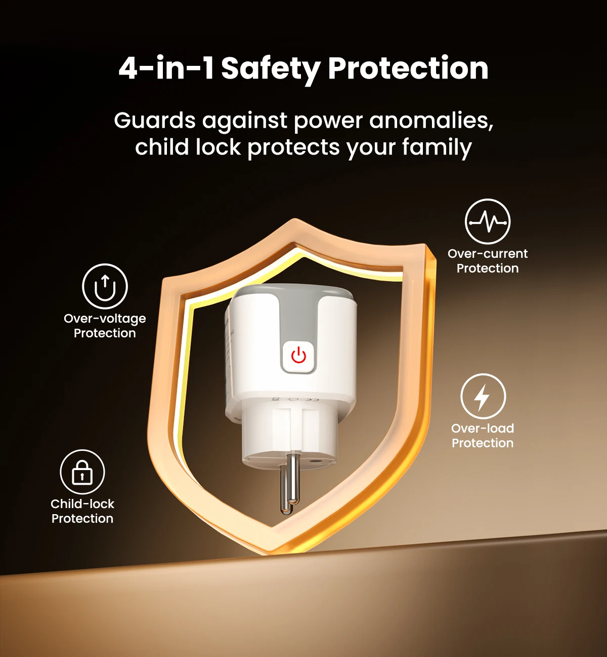 Guards against over-voltage, over-current, and over-load anomalies, paired with a rigorously tested child lock. combined with v0 flame-retardant housing, it reduces home power risks and protects your family.