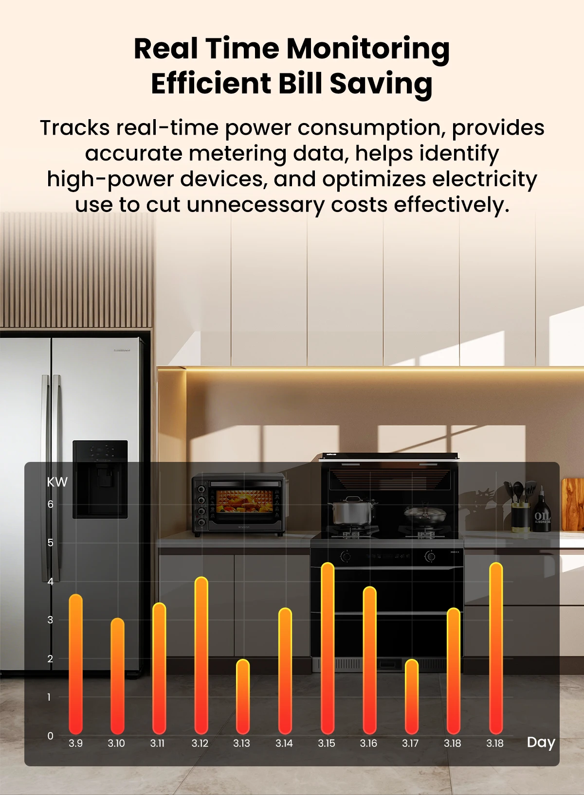 Monitor real-time power use and get accurate usage stats-use these insights to identify energy-hungry appliances, optimize consumption, and lower your unnecessary electricity expenses.