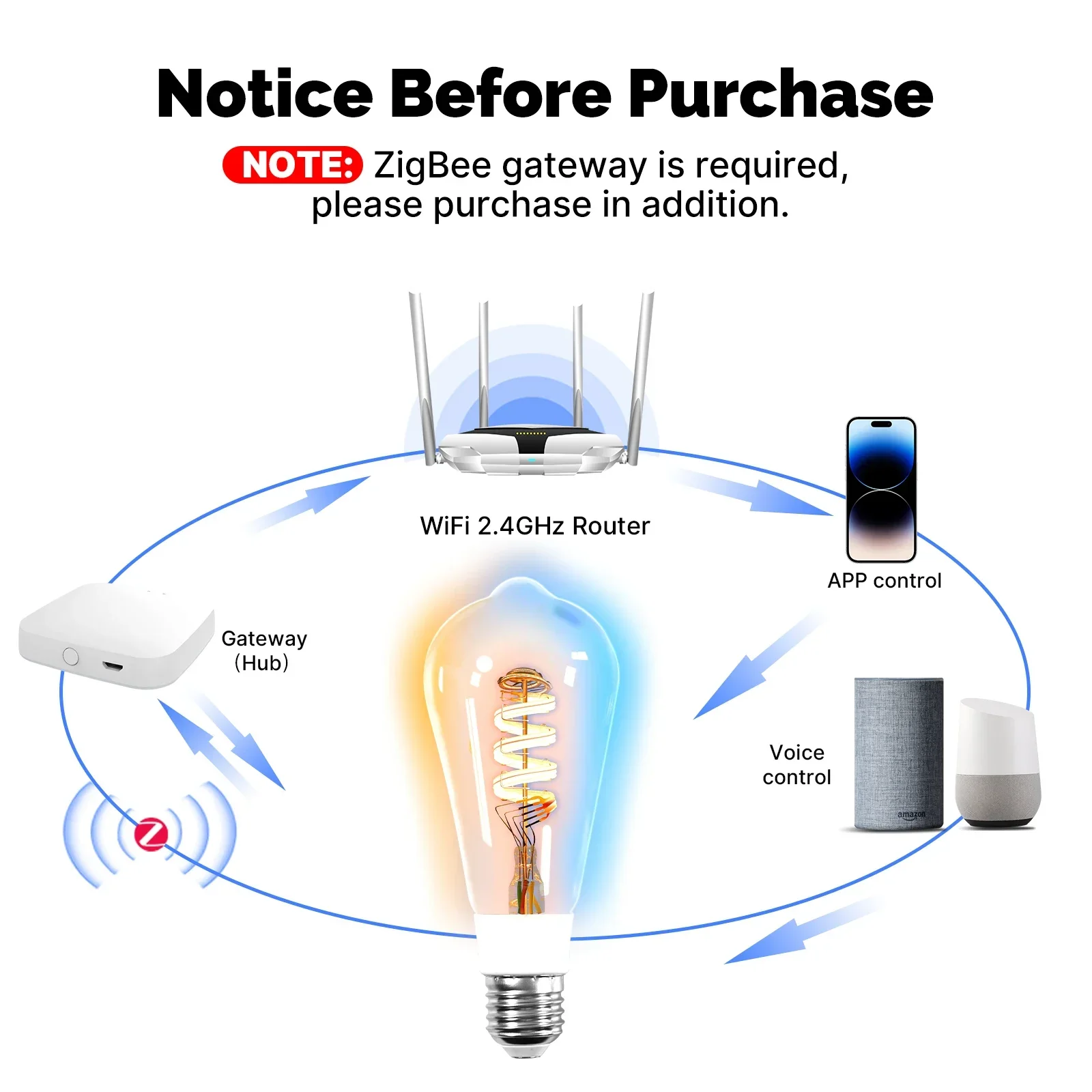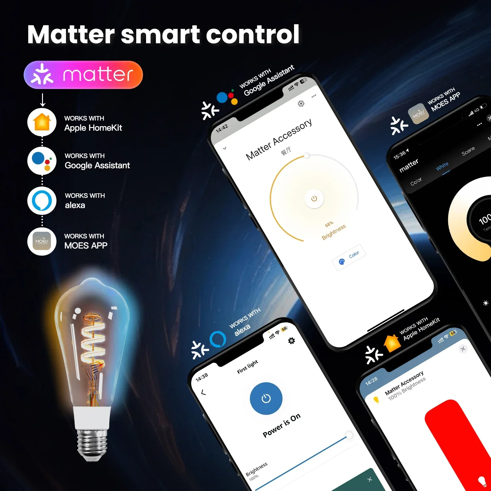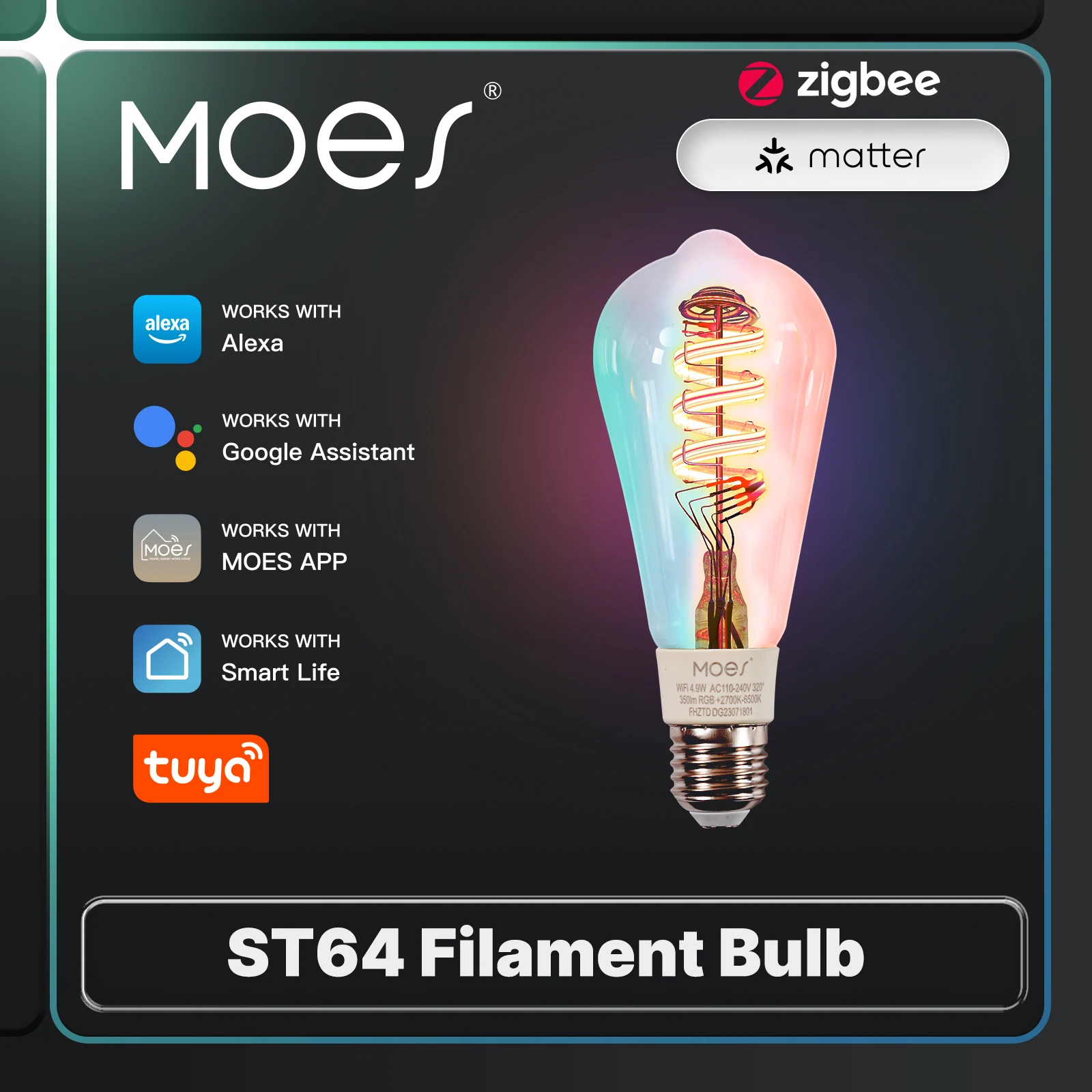 MOES Tuya Zigbee/Matter WiFi Smart ST64 LED Bulb Biological Rhythm RGB Colors Music Scene Mode Smart Linkage Wireless Control