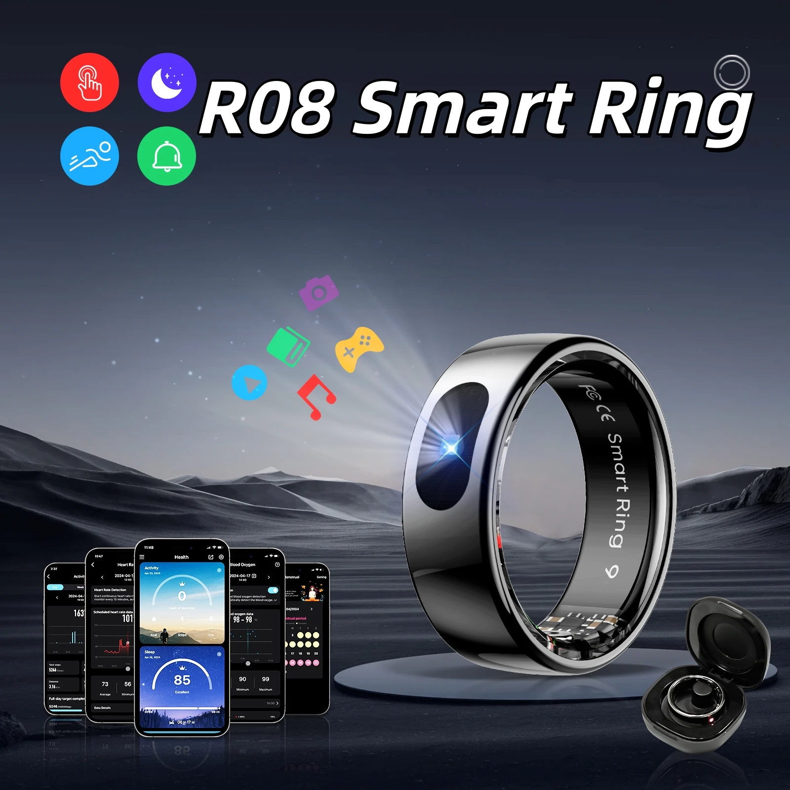 R08 Smart Ring Men Women with Charging Case