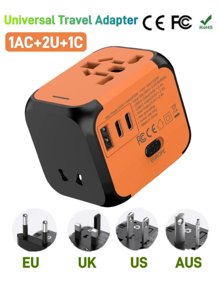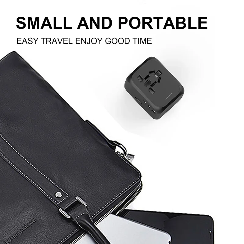 This power adapter is designed for global use, compatible with 180+ countries including USA, EU, UK, and AUS, making it a versatile travel companion.