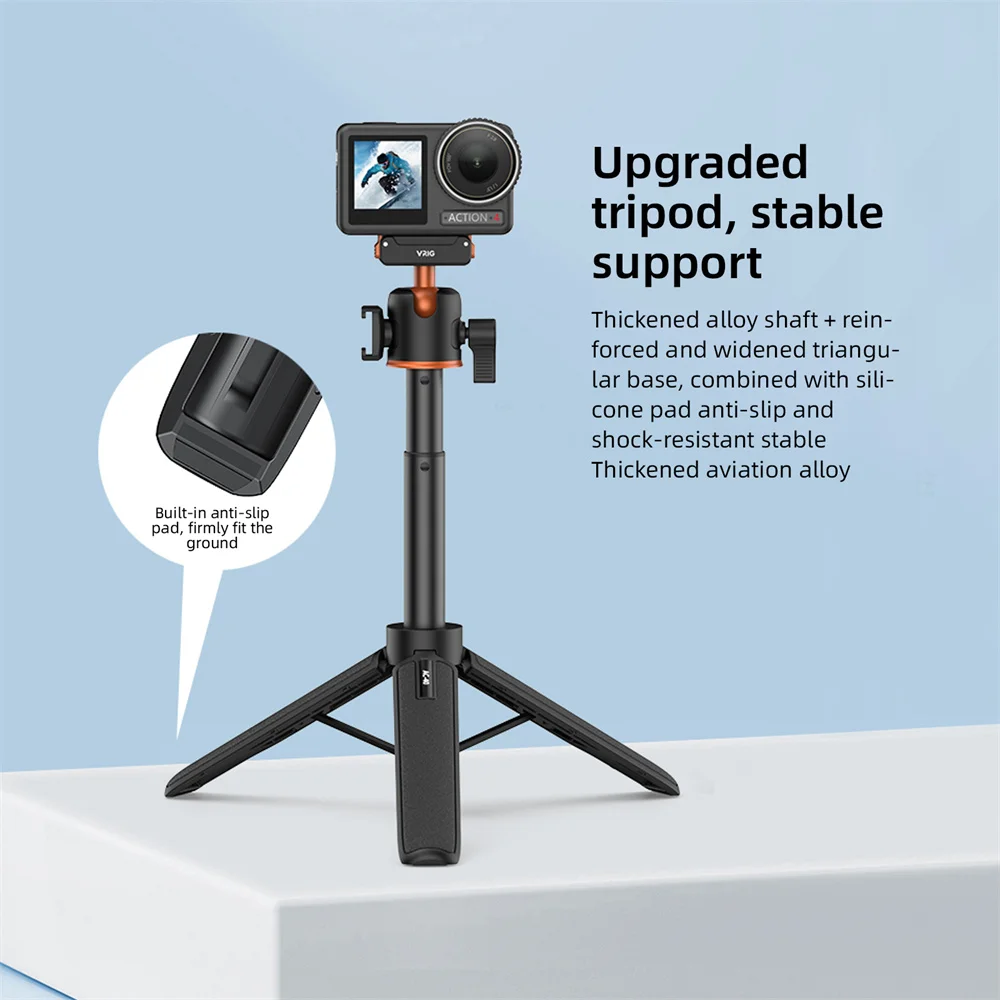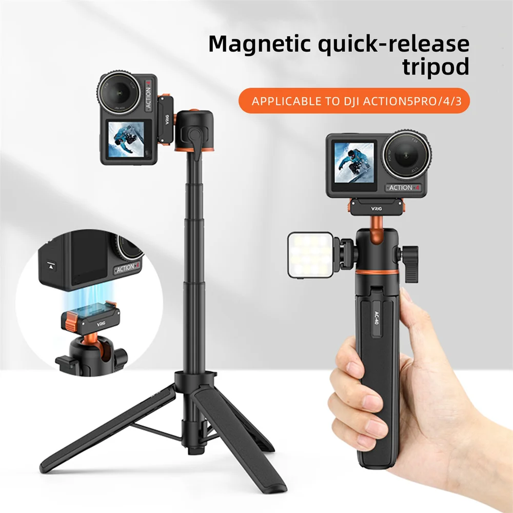 VRIG 21″ Quick Release Magnetic Tripod for DJI Osmo Action 3/4/5 Pro Extendable Camera Tripod w 360 Rotate Ball Head & Cold Shoe