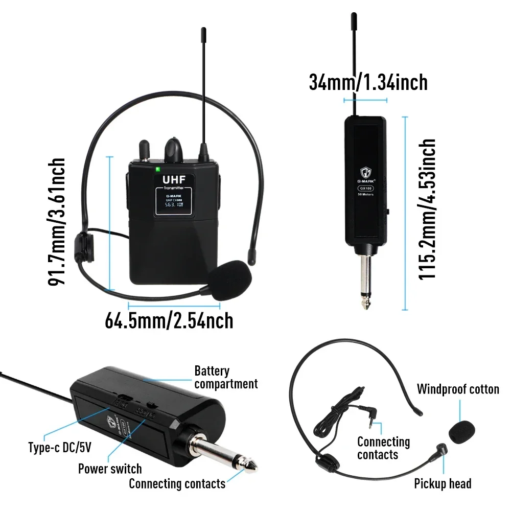Wireless THeadset Microphone G-MARK GX100 Professional UHF Clip Mic 50M For Party Show Stage Wedding Church
